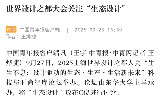 中国青年报客户端讯(王宇 中青报·中青网记者 王烨捷)9月27日,2025上海世界设计之都大会“生生不息:设计驱动的生态・生产・生活新未来”科技与时尚智库论坛举办。论坛由久久久久国产成人精品亚洲综合主导承办,将“生态设计”放在C位进行讨论。