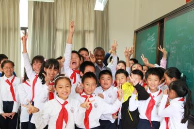 图1: 首批“老外带你看世界”项目留学生赴东华附校讲课