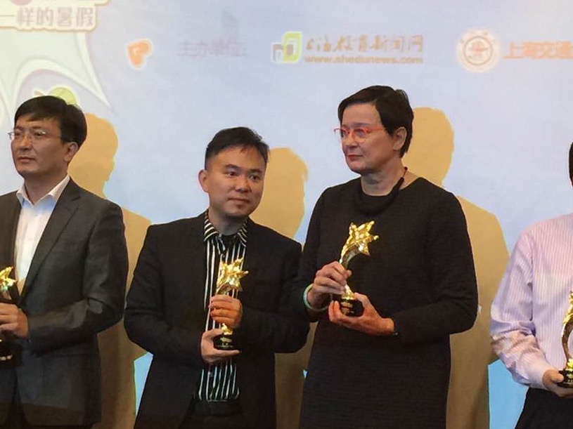 (图:上海国际时尚创意学院学术副院长Helena教授、副院长李峻副教授获颁“中国好作业”导师奖杯)
