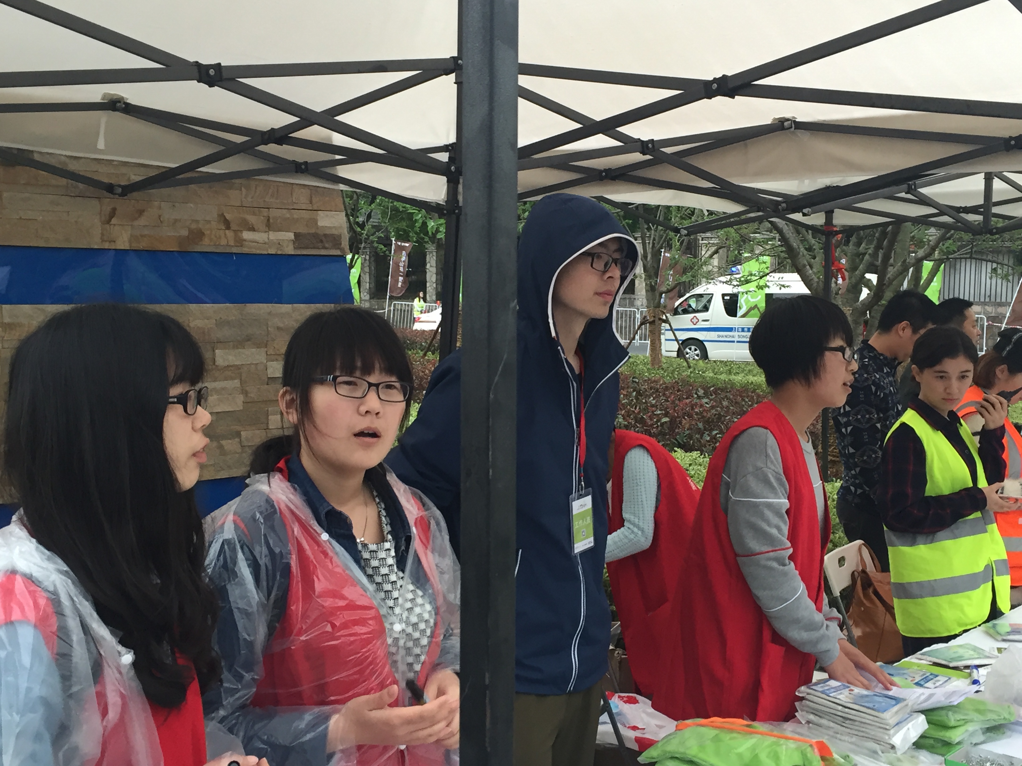 活动中,志愿者分成15个小组,提供接驳车指引、入场指引维护、咨询台服务、存包区服务、赛道管理、物资运输等多项服务,服务面覆盖本场公益跑各个环节。公益跑开跑十分钟后,由于突降大雨影响了活动的正常开展。面对这一突发情况,我校志愿者迅速作出反应,协助主办方紧急疏散参赛者,共同努力保证了应急预案的安全有效完成,之后,志愿还协助完成了爱心拍卖会及闭幕式的志愿服务工作。