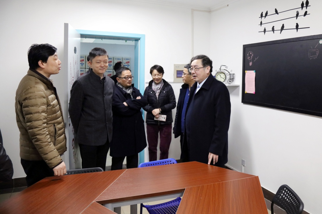 蒋昌俊一行来到教室、实验室、学生宿舍、食堂等处,仔细察看教学、生活等各项服务设施,与师生亲切交谈,关心询问工作与生活需求以及对新学期工作的期待。蒋昌俊一行还专门来到在建的复合材料协同创新中心大楼工地,了解工期进展情况。
