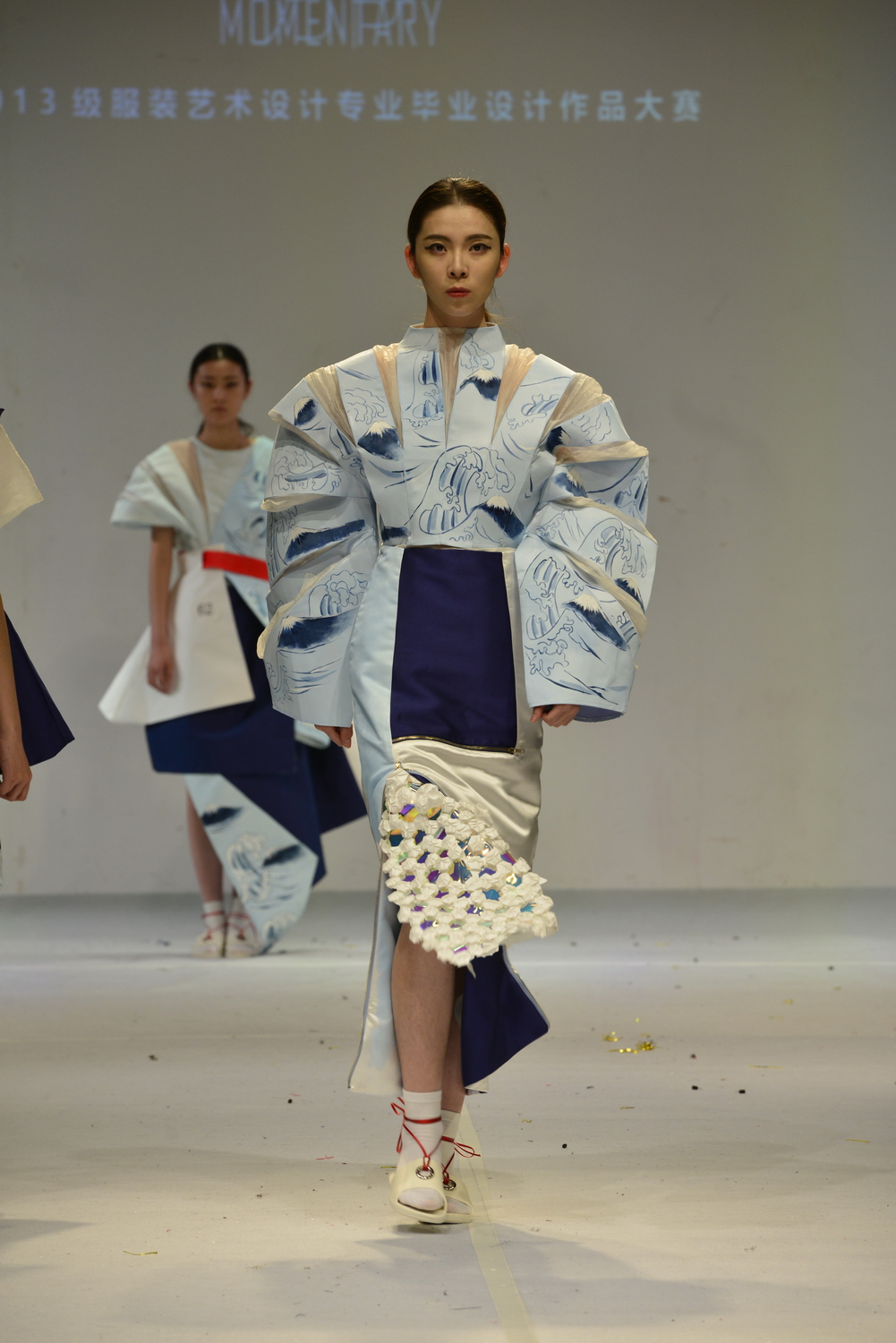 本次大赛以“刹那”为主题,现场展演的作品是2016年底“创意集成”作品展演周的两场初赛112个系列共448套服装中优选的72个系列共计288套成衣作品。年轻的设计师们依托学科基础和专业优势,沉浸于或短暂或漫长的创作过程,采用了或灵动或静谧的创作手法,述说出或大胆或传统的创作语言,触碰时尚最前沿、解构设计新语言、展现生态大秀场,追求刹那间的极致绽放和创新演绎。