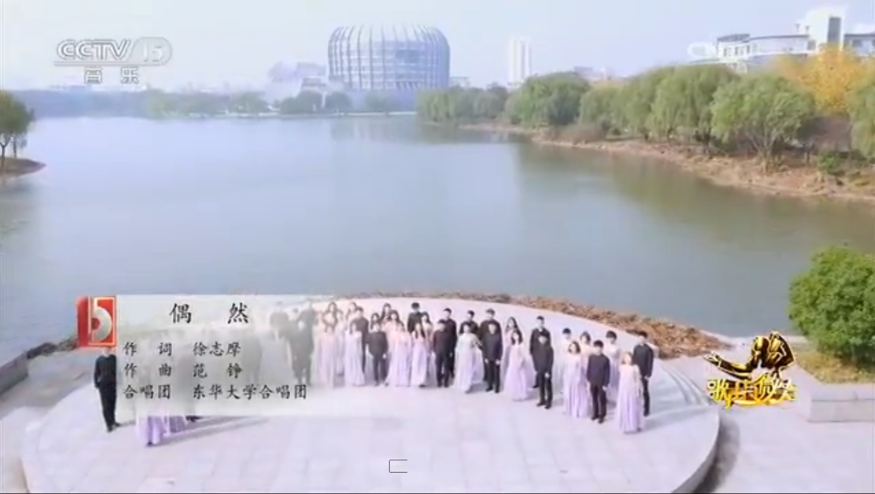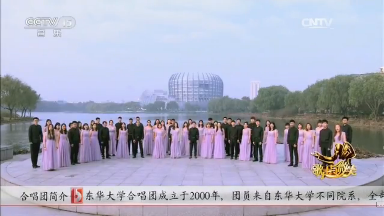 近日,我校合唱团登上中央电视台舞台,在央视十五套音乐频道《歌声与微笑》栏目中演唱了在第五届上海无伴奏合唱比赛中获得金奖的合唱作品《偶然》和《Nyon Nyon》,在全国观众面前展示了东华学子风采。