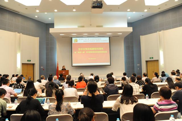 6月30日,我校在松江校区召开庆祝建党96周年暨“两学一做”学习教育常态化制度化推进会,会议的主题为“深入推进‘两学一做’学习教育常态化制度化建模范支部 展先锋形象 迎接党的十九大胜利召开”。校党委书记朱民,中国工程院院士俞建勇,校党委副书记刘淑慧、崔运花,校党委副书记、纪委书记金海燕,副校长刘春红、卿凤翎等出席会议,教师、学生党员和民主党派代表等近200人与会。会议由崔运花主持。