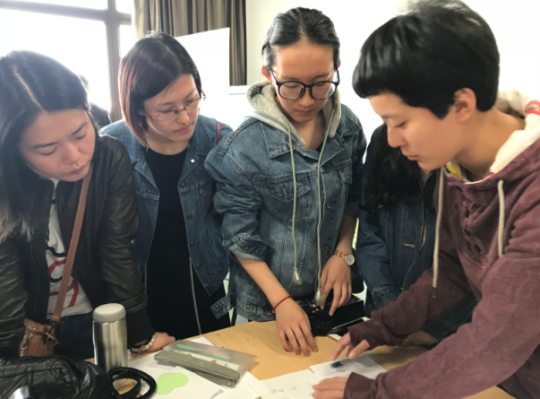 课程以小组为单位,6人为1小组,共5组。从第一天的破冰游戏开始,到第二天的参观考察,头脑风暴,方案成型直至最后汇报完成,都以小组为单位来进行。在课程活动中大家一起吃、一起玩、一起思考、一起绘图,一起头脑风暴,一起建模、一起做展板。仅仅一周时间,大家在愉悦的氛围中出色完成了课程任务,同时建立了深厚情谊。