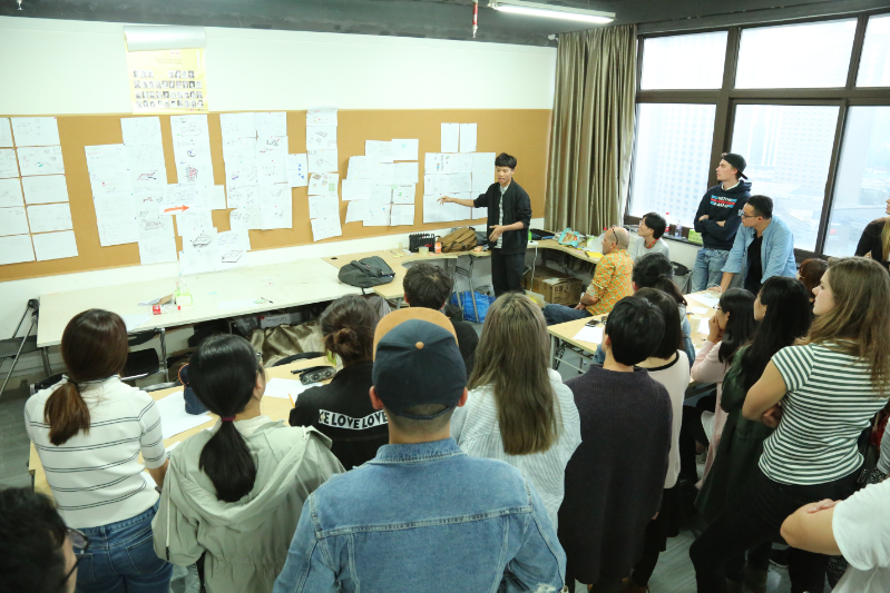 在课程开始几天,头脑风暴占领了主导,旨在用师生互动,快速的表达方式引导同学们打开思路,源源不断地涌现出许多优秀的想法,在课程中使用近2500张A4纸,并从中选出有深入价值的方案进行讨论,直至成型为完整方案。除了所有任课教师外,本次课题全程邀请了课题提供单位上海卡恩公司企业的设计和市场部代表参加,他们和学生一起互动沟通,以最快的速度给到学生真实反馈,同时也给他们的创意的实操性带来了很多建议。