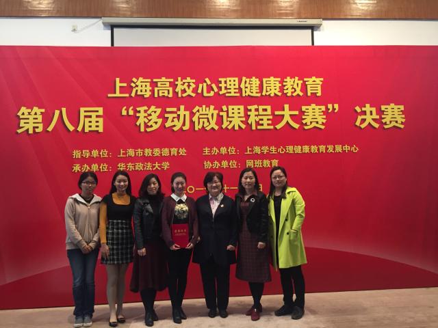 11月2日,上海高校心理健康教育第八届“移动微课程大赛”决赛在华东政法大学举行,我校学生处王肖老师在决赛现场表现出色,精彩讲授微课程《你被手机“绑架”了吗?——从“即时满足”和“延迟满足”的心理机制解读》,最终获得全场第4名的成绩。同时,王肖和魏冰老师获得网络最佳人气奖,我校心理健康教育与咨询中心获优秀组织奖。