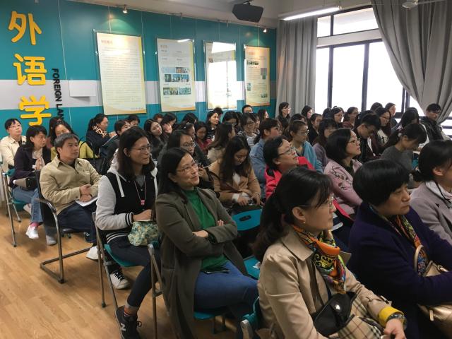 为宣传贯彻党的十九大精神,引导广大党员准确把握十九大的思想精髓、核心要义,11月14日,外语学院党委邀请松江区委党校副校长、中共上海市委讲师团首批特聘讲师陈超老师作了题为“面向新时代的政治宣言和行动纲领”的十九大报告精神解读讲座,外语学院师生党员集体聆听了讲座。