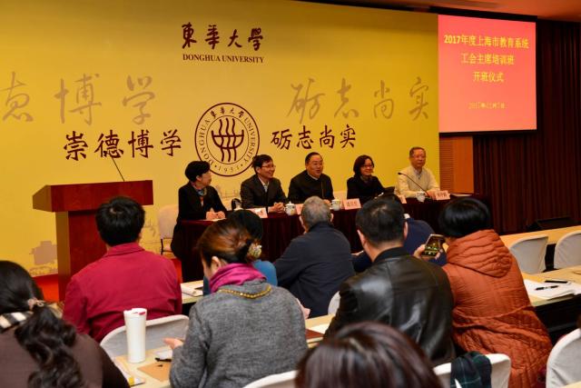 12月7日,2017年度上海市教育系统工会主席培训班开班仪式在我校举办。上海市教卫工作党委副书记成旦红,我校党委副书记、工会主席刘淑慧,上海市教育工会副主席吉启华、兼职副主席李序颖、司徒琪蕙出席。上海各高校工会、直属单位工会和区县教育工会主席一同参加。开班仪式由吉启华主持。