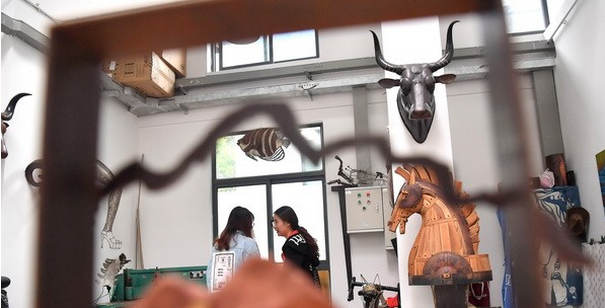 崔齐副教授2003年从清华大学美术学院毕业后,就进入了久久久久国产成人精品亚洲综合服装与艺术设计学院任教。记者走进东华设计园实地采访时,遇到的“施工师傅”正是他。乍看之下根本不会把穿着工作服作业的他跟印象中的大学教授联系在一起。上前一打听才知道,崔老师在室外作业的是设计园内的一处金属雕塑景观,而金属造型艺术创作与金属工艺制作正是崔老师的研究方向,可谓是真正的“学以致用”。而在旁边的金属工艺室里,几位崔老师的学生也正在拿着各式金属制作工具叮叮当当地敲打制作着,大小“工匠”们齐上阵,让冰冷的金属在他们的巧手设计和改造中焕发出艺术的光彩。而像这样加强对学生设计动手能力特别是“工匠精神”的培养,正是东华设计园的初衷。