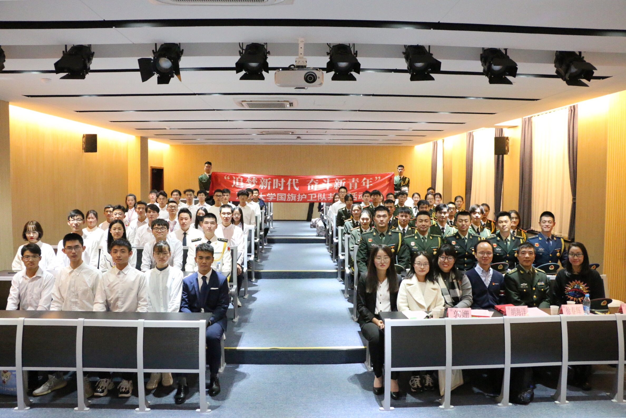 11月29日,为深入推进“不忘初心、牢记使命”主题教育,根据学校党委主题教育工作部署和实施方案,信息科学与技术学院邀请国防大学政治学院来校开展“不忘初心、牢记使命”主题教育系列活动之“追梦新时代·奋斗新青年”主题共建活动。国防大学政治学院二大队学员七队队长徐春辉和参加国庆70周年阅兵的六名学员受邀来校,信息科学与技术学院、学生处相关教师,校国旗护卫队指导老师,国旗护卫队全体队员参加活动。