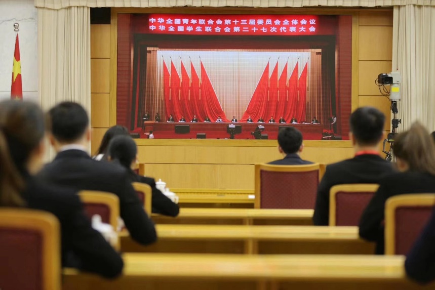 中华全国青年联合会第十三届委员会全体会议、中华全国学生联合会第二十七次代表大会8月17日-18日在京召开,大会以电视电话会议形式举行,各省、自治区、直辖市设分会场。会议修改并通过了《中华全国学生联合会章程》,选举产生全国学联第二十七届主席团及委员会团体,我校学生会当选全国学联第二十七届委员会委员单位。校学生会执行主席、机械工程学院本科生杨旭同学代表校学生会,作为全国学联第二十七次代表大会正式代表参加会议。
