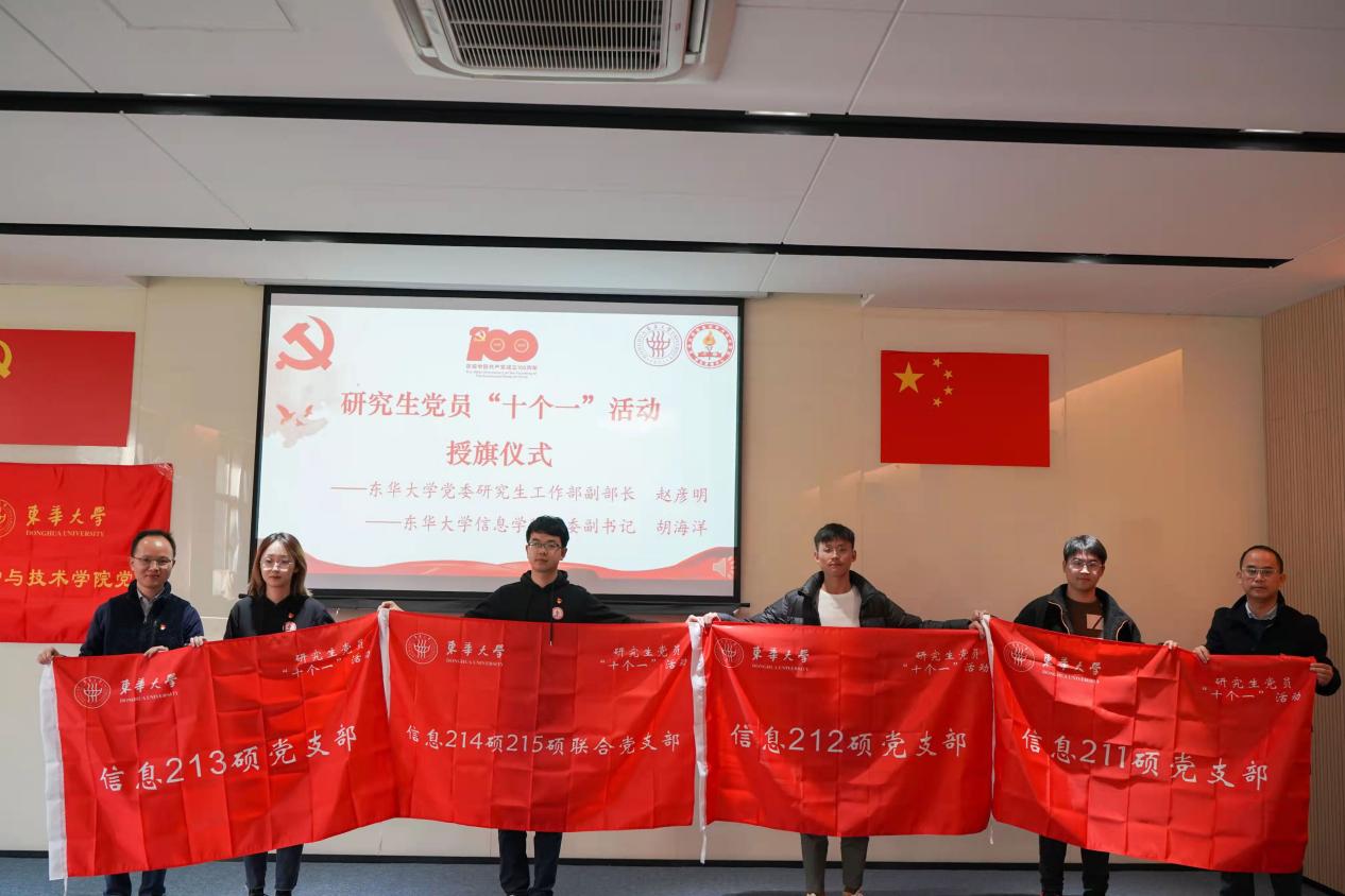 (为研究生党员“十个一”活动授旗)