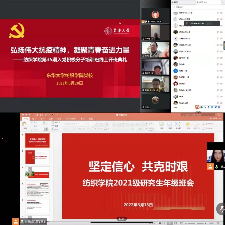学院为全体师生送上“所有的纺织人们,让我们一起静待春暖花开”的隔空关心和慰问,引导全院师生坚定抗疫必胜信念,做好全体师生的主心骨和贴心人。用好“东华纺织”“红色经纬”等线上平台,开展“疫情当下,作为学生的我们应该怎样做?”主题留言征集,短短一天时间里受到近2000名学生的关注留言。充分发挥导师、辅导员、学生党员骨干力量,围绕家与国、责任与担当等主题,构建多种形式的抗疫思政课堂。全覆盖开展“同心抗疫,共克时艰”“弘扬伟大抗疫精神,凝聚青春奋进力量”线上主题班会、主题党团日活动,做好云端思政,坚守网络育人阵地,引导学生坚定理想信念,在培根铸魂中擦亮爱国底色。