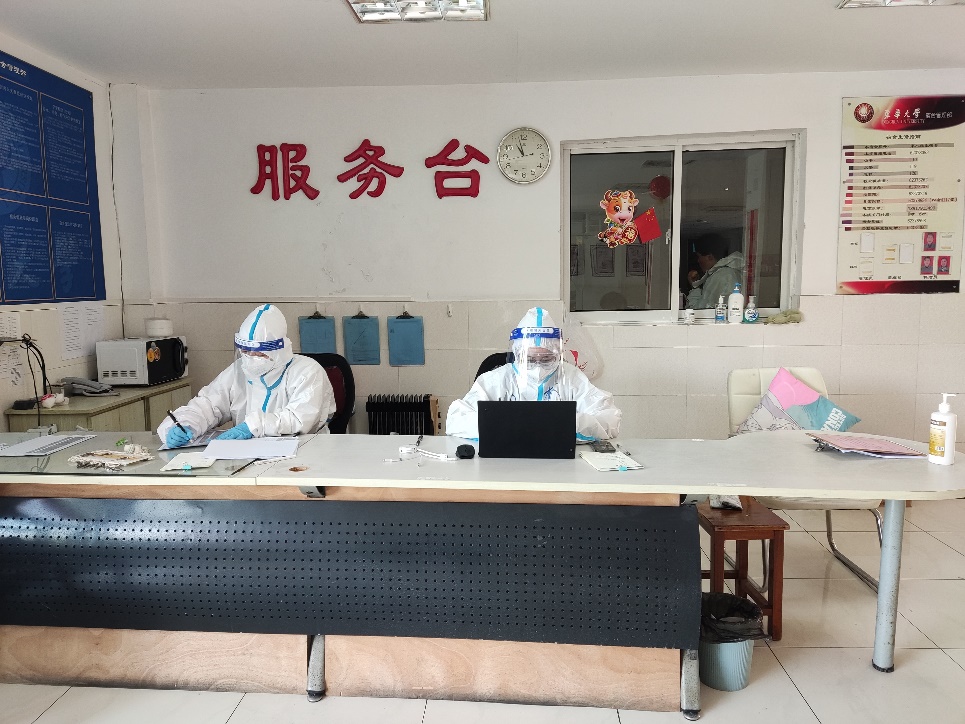 在战“疫”申请书中,有老师写道:“疫情是命令,学生是责任,我自愿申请坚守疫情防控第一线!”党员干部、辅导员、任课老师……从那一天起,每栋宿舍楼里总有几个房间一夜未熄的灯,深夜里总有不停忙碌的身影。
