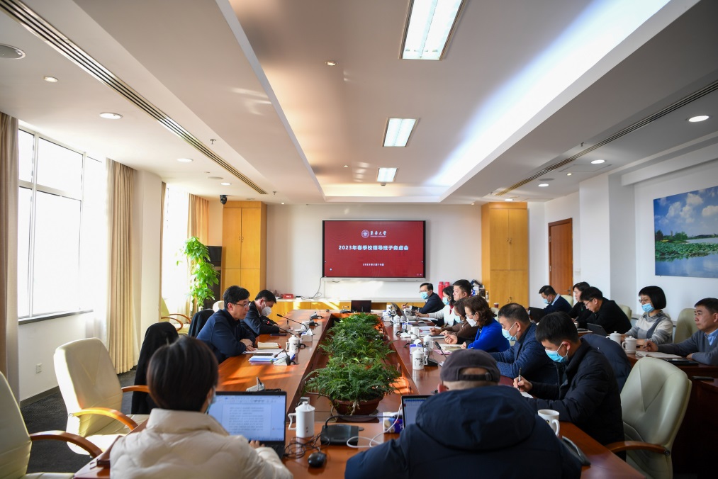 刘承功指出,今年是全面贯彻落实党的二十大精神的开局之年,要把学习宣传贯彻党的二十大精神进一步引向深入,全力营造浓厚的学习氛围,通过学习深化对当前国内外发展形势的认识,加强战略谋划和调查研究,找准学校服务国家重大战略和上海城市发展的着力点,深化拓展对党的二十大报告中关于教育、科技、人才一体化部署的理解,进一步推动党的二十大精神落地见效。要抓好上海党建工作特色高校创建,进一步增强党组织政治功能和组织功能,深化构建大党建格局,强化组织体系建设,选优配强教师党支部书记“双带头人”,着力提升干部素质能力,激发各级干部担当作为,激发抢抓机遇、真抓实干的强大动力。要抓好全国文明校园创建,认真对标对表,强长板补短板,立足学校实际,进一步拓展校园文化建设载体和阵地,提升校园文化软实力,深入推进大文化工作格局。要抓好“大思政课”建设,以上海市“大思政课”重点试验高校建设为引领,推动思政工作改革创新,及时固化成功经验做法,努力培育时代新人。就推动学校改革发展,刘承功强调,要紧密结合国家和地方发展战略需求,进一步调整优化专业学科布局,强化基础学科支撑,大力发展战略新兴学科。要深入做好国家重点实验室重组等重点工作,推进科技创新与区域经济社会发展深度融合。要以推动落实学校人文社会科学研究繁荣计划为契机,全面推进人文社科发展,有效提升学校资政辅政影响力。要加强师生海外学习交流,不断提高国际化办学水平。要重点围绕人事人才、资源配置以及校院两级管理等方面深入推动改革,进一步完善学术治理体系,不断提升学校治理能力和水平。时刻绷紧安全这根弦不放松,抓牢学校意识形态安全和校园稳定,抓好新形势下校园疫情防控各项工作,为学校改革发展提供坚实保障。